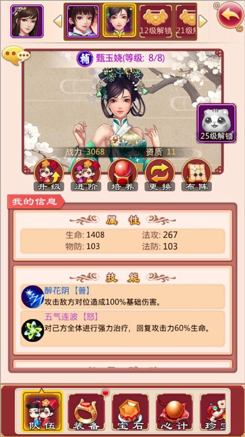 甄嬛阵营相对容易凑齐,第二天会送浣碧,第七天送甄嬛,再加上充值200元获取的温太医,实力绝对相当强悍。非人民币玩家和小额人民币玩家建议选择这条路线,要是进度够快,在排行榜上占据靠前位置是完全可行的。