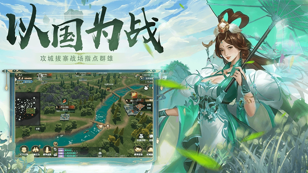游戏以唯美国风画面为基底,构建出一个融合古典韵味与二次元元素的三国世界。