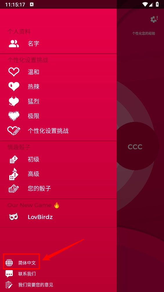 打开CoupleGame游戏,进入游戏主页后,点击右上角的“设置”图标。