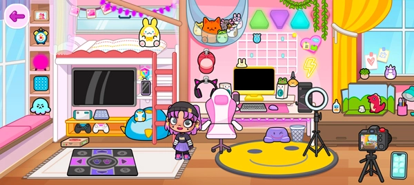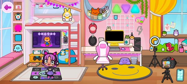 游戏的地图能划分成不少不同区域,像每个场景基本都有几个房间,能自由放置在场景里装扮角色,而且角色数量也不止一个,所以每次玩的时候,体验感都挺丰富的。