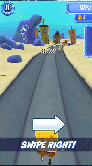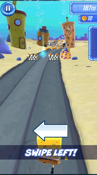 向左滑动,可以移动海绵宝宝到左边躲避障碍