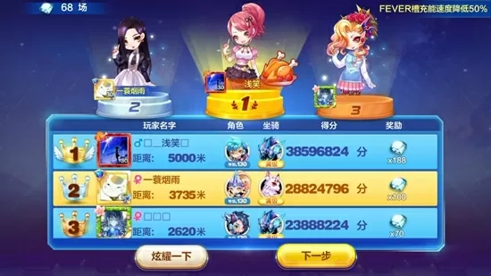 玩家进入游戏后,能够挑选不同的场次参与!不同场次所需的入场券各不相同,并且比赛结束时,各个名次对应的奖励也存在差异。在金币场模式下,比赛结束后,所有名次获得的奖励都是金币;而在钻石场模式中,比赛结束后,排名前6的玩家会得到不同数量的钻石奖励,排名后2的玩家则会获得不同数量的积分奖励。