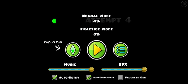 《几何冲刺崩溃完整版》是一款极具挑战性的节奏跑酷游戏,其英文名为Geometry Dash Meltdown。在游戏里,玩家将化身为几何形状的角色,在高速移动过程中躲避尖刺、陷阱、怪物等各类障碍物。游戏的一大亮点在于高品质的背景电子音乐,每首曲子都与关卡场景、机关节奏实现了完美契合,玩家可以根据音乐节奏提前预判跳跃时机。