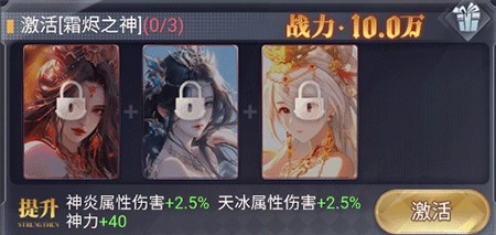 提升:神炎属性伤害提升2.5%,天冰属性伤害提升2.5%,神力增加40点