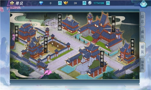 在帮会地图里,建筑主要有六类,它们分别是长生殿、战争坊、福利殿、瑰宝阁、主殿与研究院。而其中最为核心的三大建筑是战争坊、研究院和福利殿。第一,战争坊对于帮会领主开展活动起着至关重要的作用,并且帮众能够在这儿增强本帮会的防御能力;第二是研究院,玩家在此能够学习各类帮会技能,以此提升角色的战斗力,进而让自身的游戏体验更上一个台阶;最后,帮众每天还能前往福利殿领取三次十分丰厚的帮会福利。