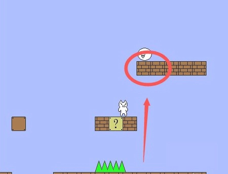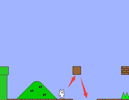 来到悬崖边上时,若想引出那块隐藏的砖头,可不能直接跳下去,否则会被它顶落到悬崖下方。