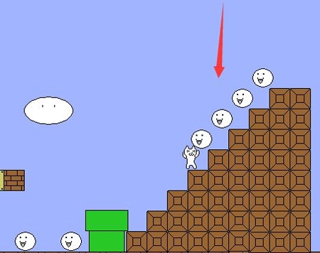 进入游戏后,能看到两个小怪朝着猫里奥的方向移动,此时需要选择将它们踩死或是直接跳过。