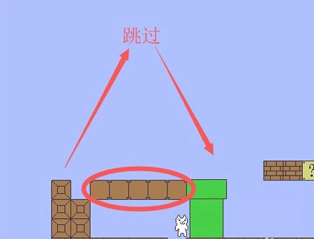 跳过悬崖后别急着往前走,前方的小怪和前两个砖头会在你经过时掉落,先引诱一下,等小怪和前两个砖头都掉下去后再继续前进。