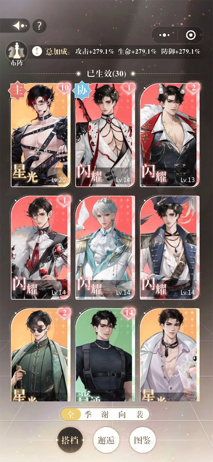 形影相随构建连击根基→谢黎星潮流完善反击环节→草莓饼干与时光美学合力强化属性→借助葡萄实现短时爆发,由此形成「连击→反击→增伤」的初级循环体系。