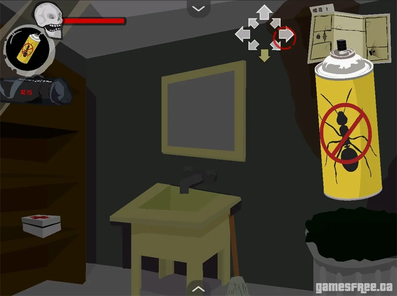 游戏里的道具作用设计很有巧思,像虫子喷雾机得和打火机搭配使用才能对僵尸生效,这样的设定让游戏玩法更丰富,也增添了解谜的趣味。