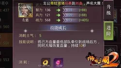 另外,武将的进阶还受等级限制。当武将等级达到10级时可进阶为真,20级时可进阶为鬼,30级时可进阶为神,40级时可进阶为天。由此可见,武将的升级与进阶相辅相成,缺一不可。