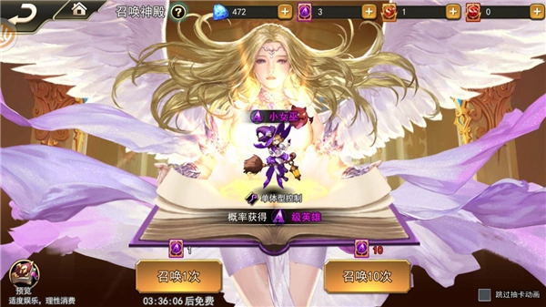 PS:召唤页面会提供当日必得碎片英雄的试玩机会哦~可以先体验一下,再决定要不要抽呢~