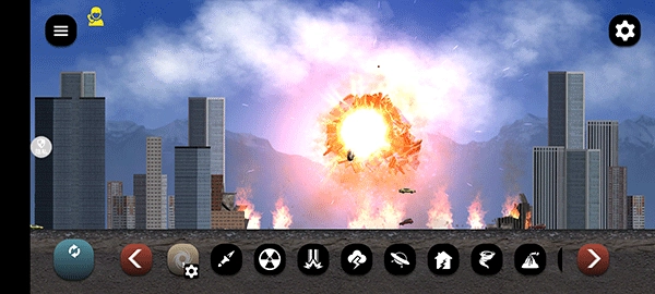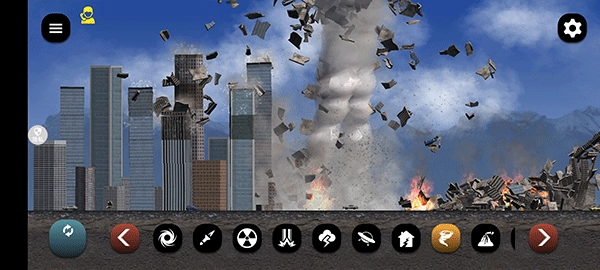 游戏启动后,呈现的是以城市为背景的地图界面,我们能够自由切换不同场景,界面下方那一排功能选项对应的是灾难模拟功能。