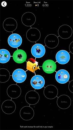 点击下方的tech tree即可打开科技树,通过消耗星星能够解锁各类不同的科技。