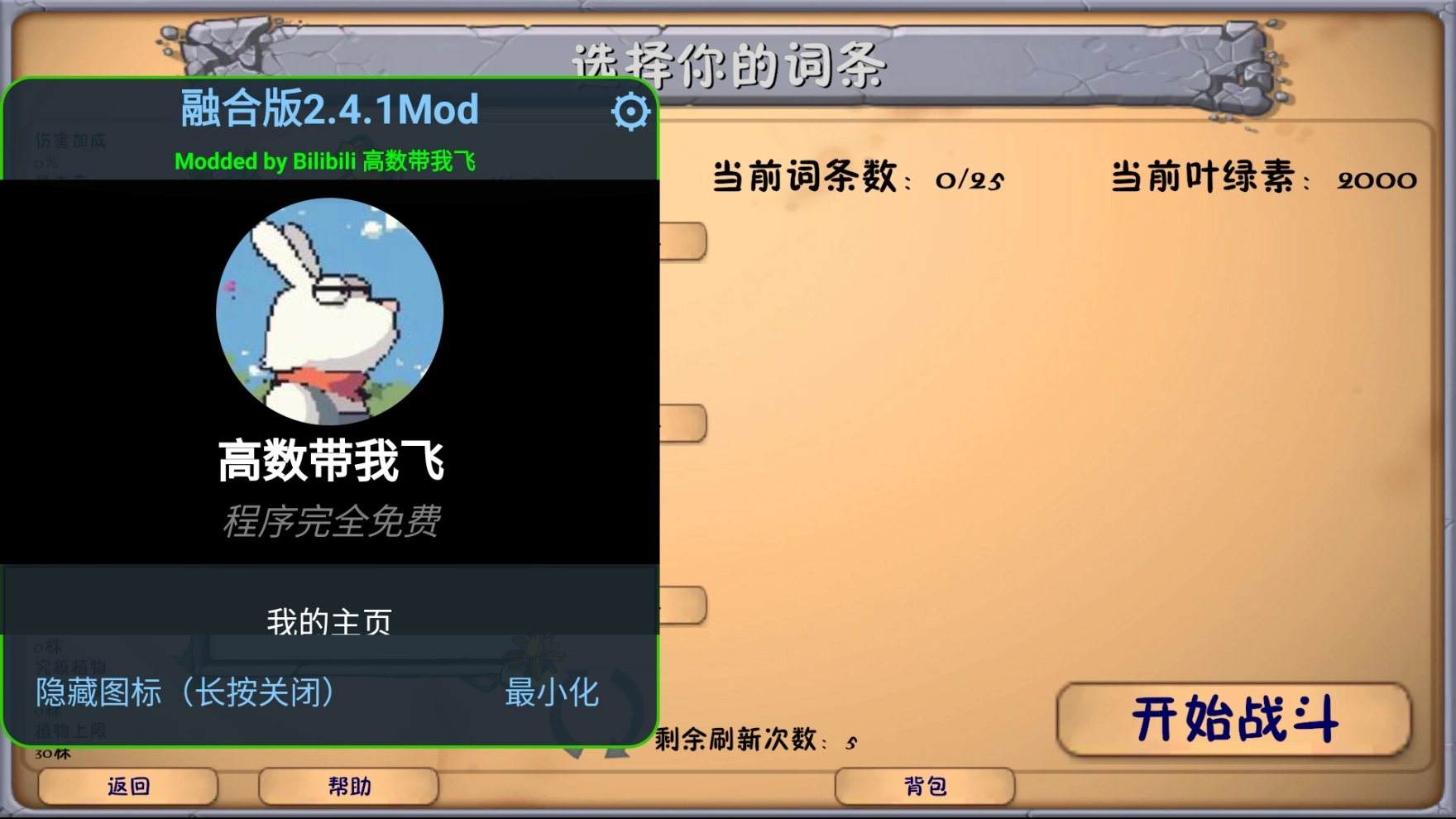 增加玉米炮快速装填、100%黄油触发等基础功能。5. 开放深渊无限刷新次数,提供无限叶绿素,并解除词条上限限制。6. 取消阳光帝果与剑仙的使用限制。
