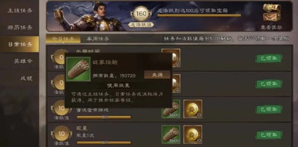 日常任务是获取经验最快的途径;达到经验上限后,组队进行扫荡可以获取升阶材料,既能消耗体力继续积累经验,还能大量掉落兵书!
