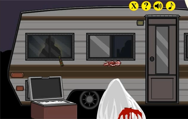 我们首先点击报纸,接着点火坑;再点右下角的柴火,然后点火坑。之后点击左边的罐头盒,把它放在烤架上;再点击穿紫色衣服的人(或角色)口袋里的火机,然后点火坑。等臭鼬去吃烤架上的罐头后,点击臭鼬吃剩下的罐头和蜘蛛网;等蜘蛛爬下来后,再点击蜘蛛网。然后点击臭鼬,等臭鼬被蜘蛛网包裹后,最后再点击一次臭鼬。最后点击有破洞的车窗口,进入箱车。(直接点击臭鼬会触发一个好结局)