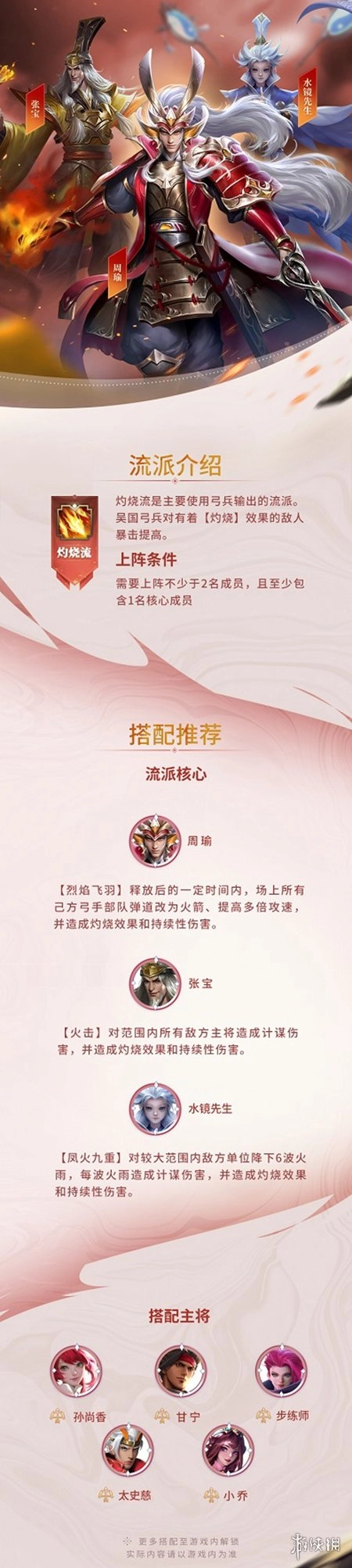 周瑜可释放足以焚尽万物的火箭,既能对敌人造成灼烧伤害,还能提升己方弓手的攻击速度与灼烧效果。