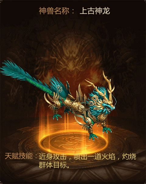 形态说明:召唤远古神龙,远程群体扇形攻击。