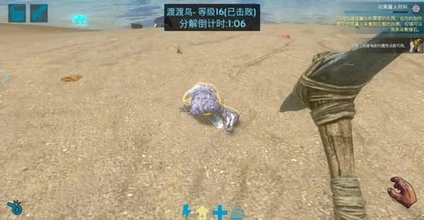 渡渡鸟是新手接触较多的生物,多分布在海岸、平原与森林区域。它性情温顺无攻击性,受到攻击时只会逃跑,因此成为新手练习获取生肉、驯化以及繁育等技能的理想对象。