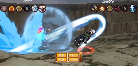 二技能:查克拉吸取,施术者跃起后瞬移下砸,命中目标后将汲取其查克拉;同时会依据目标当前的奥义点数,为自身恢复相应血量,并额外增加一格能量。