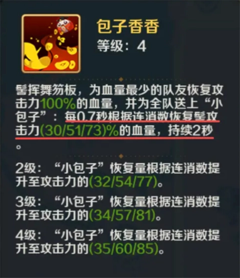 虽然她的消除技【包子香香】里也提到,会依据连消数为我方全体回复不同档位的生命值;