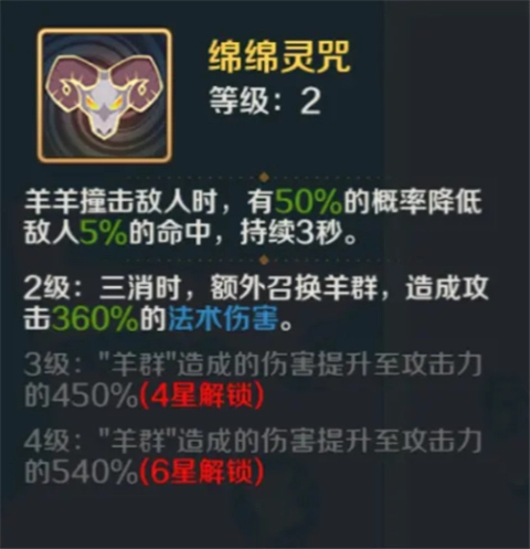 绵绵的一消和二消技能,分别是召唤小羊驼与中羊驼发起攻击,不过这两个技能都仅能对最前方的敌人造成伤害,同时为其添加标记。