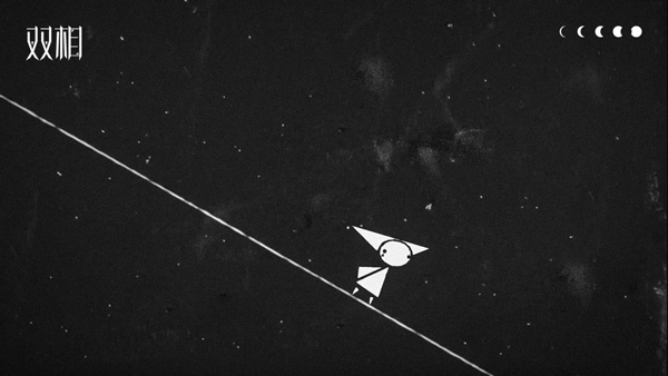 《双相》里的主角“我”,既是玩家要操控的游戏角色,形象又以大小不一的三角形、圆形这类简单几何图形拼接而成,部分设计还借鉴了“小丑”元素,整体走简约风格。可这看似简洁单薄的身形、毫无波澜的表情背后,藏着的是内心的矛盾与挣扎。把主角形象放大看会发现,眼睛旁的小三角,原来是滴落的泪珠——就像很多时候,人们只看到“小丑”夸张的笑脸,却极少留意到他眼角的泪滴。