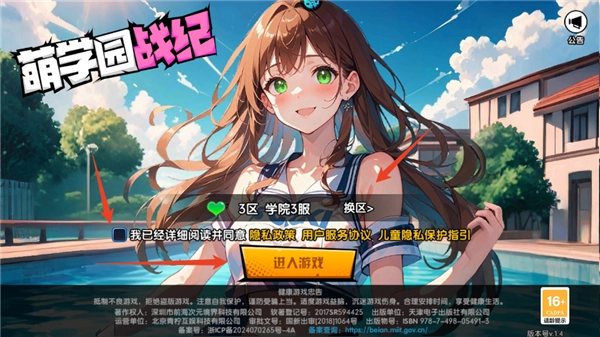 玩家登录账号后会看到如下界面,只需勾选同意协议并选择服务器,即可进入游戏。