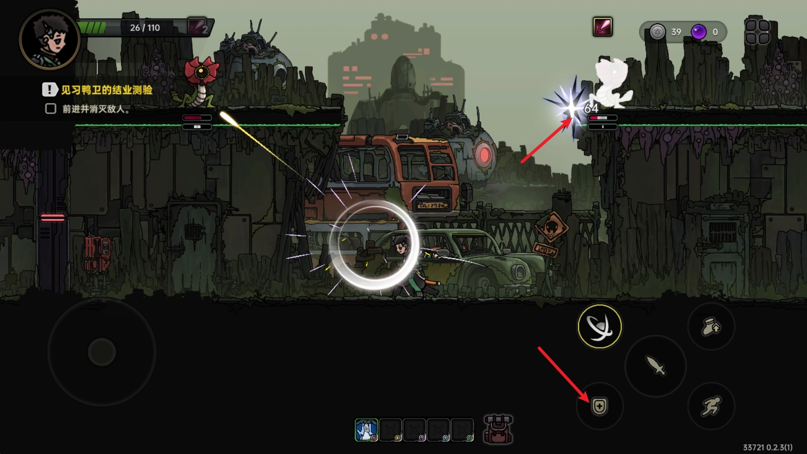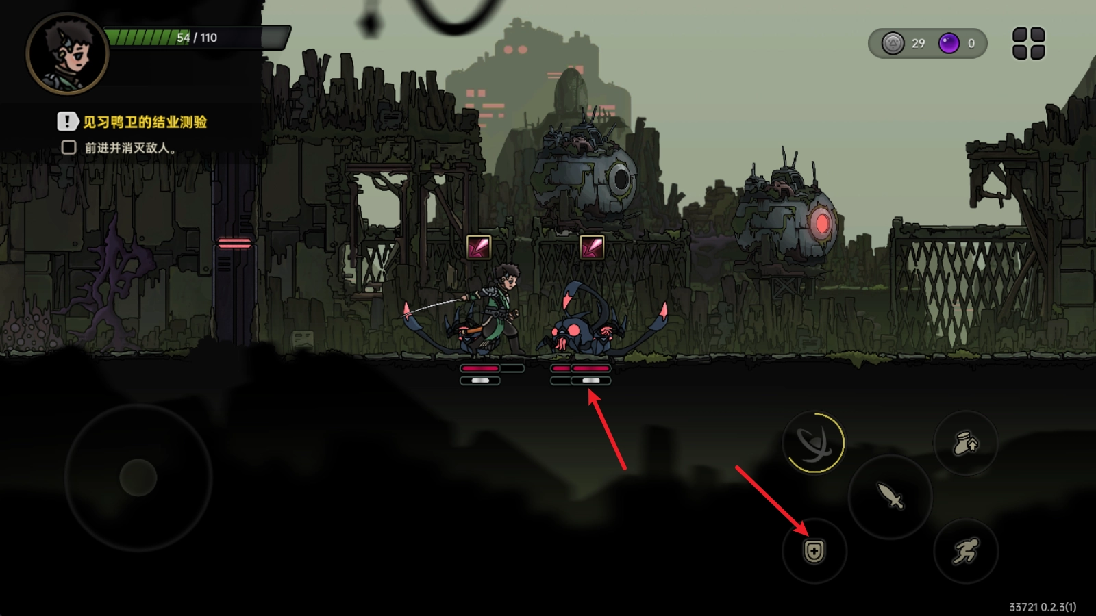 提前判断敌人的攻击动作,点击右侧的盾牌图标就能完成招架并发起反击。