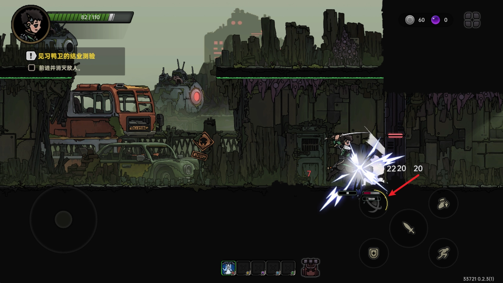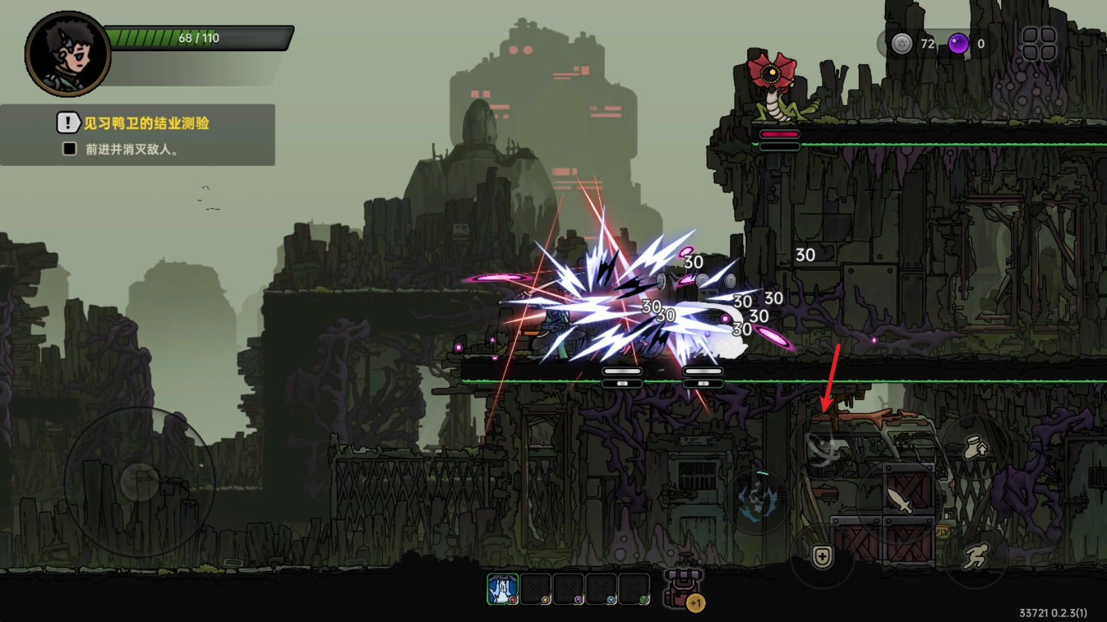 每一关都有若干敌人,击败它们就能得到奖励,还能从两种随机技能里选一种获取。