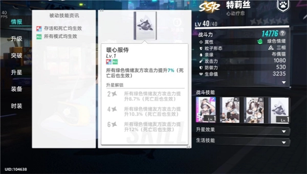 摇摇心情:定位是嘲讽类群护角色,在队伍里能发挥一定作用。不过T位武装里有不少SR角色表现也很出色,所以要是队伍里有晚安电音或者暴走这类角色,不太建议优先保留它。如果决定保留,投入多少资源得根据具体关卡情况和队伍搭配来定。总的来说,除非是真的很喜欢这个角色,否则不推荐留存。
