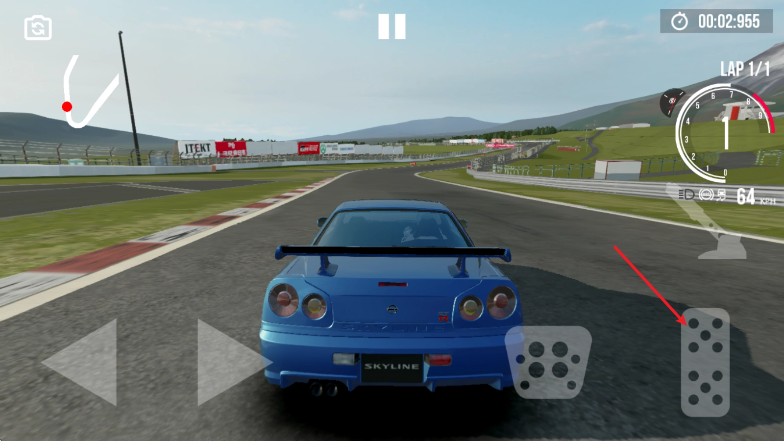 游戏中,点击右侧长踏板即可启动,并不断加速。