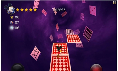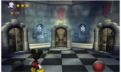 童话世界的挑战充满新意:多样的主题关卡让玩家在游戏里的体验格外丰富,关卡中那些让人目不暇接的互动陷阱、特色鲜明的敌人,让整个冒险之旅既紧张又刺激。各种解谜元素穿插其中,玩家在持续前进的同时还能适时动动脑筋;部分场景里还加入了不同的挑战内容,不仅玩法会有变化,视角也会跟着调整,像不断朝米奇滚来的大苹果、镜子里映出的机关等等。从主题到场景再到挑战,整个游戏过程都给人一种不断变化的新鲜感,童话世界的奇妙之处在《米老鼠:幻影城堡》里展现得十分充分,每一关的体验都是一种极致的快乐享受。
