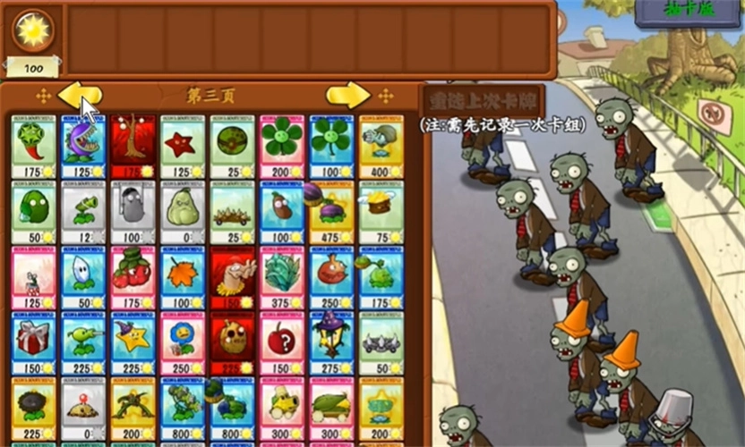 新模式是限定抽卡玩法,和常规抽卡版本的存档相互独立(属于单独版本)。在该模式里,每通过一关就会抽取【5加上当前关卡数】个限时植物,这些植物仅能在当关使用,通关后植物会被清空并重新抽取!!(在这个模式的高难度关卡中,普通僵尸可能会变成礼盒僵尸哦~)