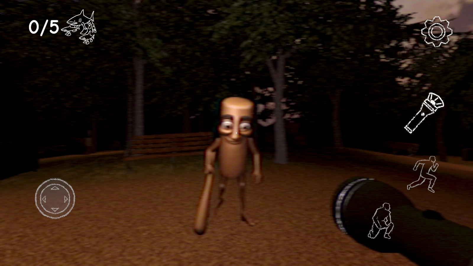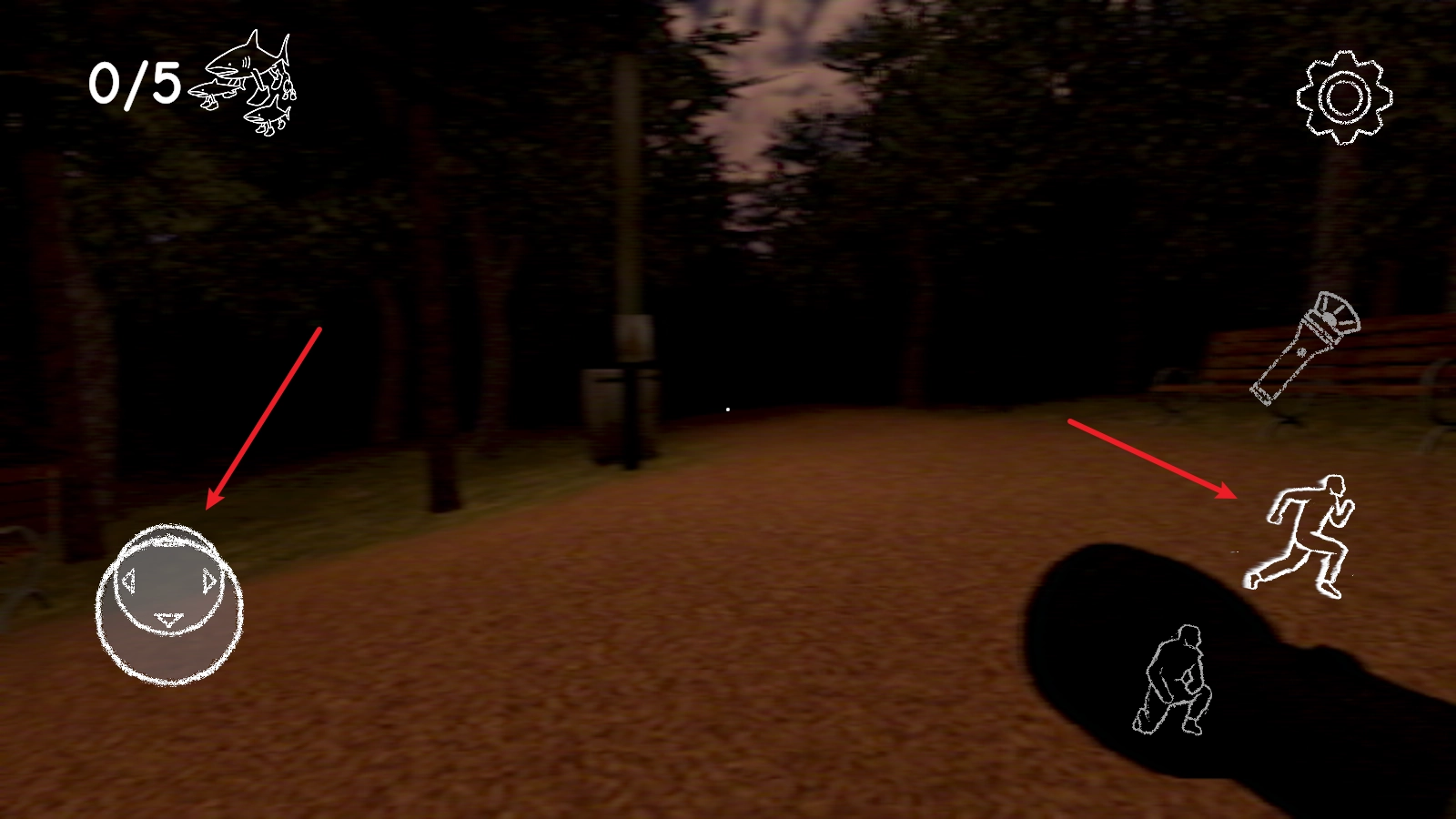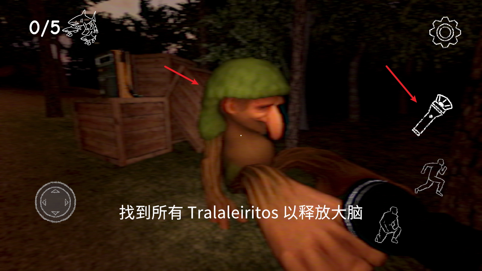左侧的摇杆用于操控人物移动,右侧的跑步按钮可让你加快行进速度。
