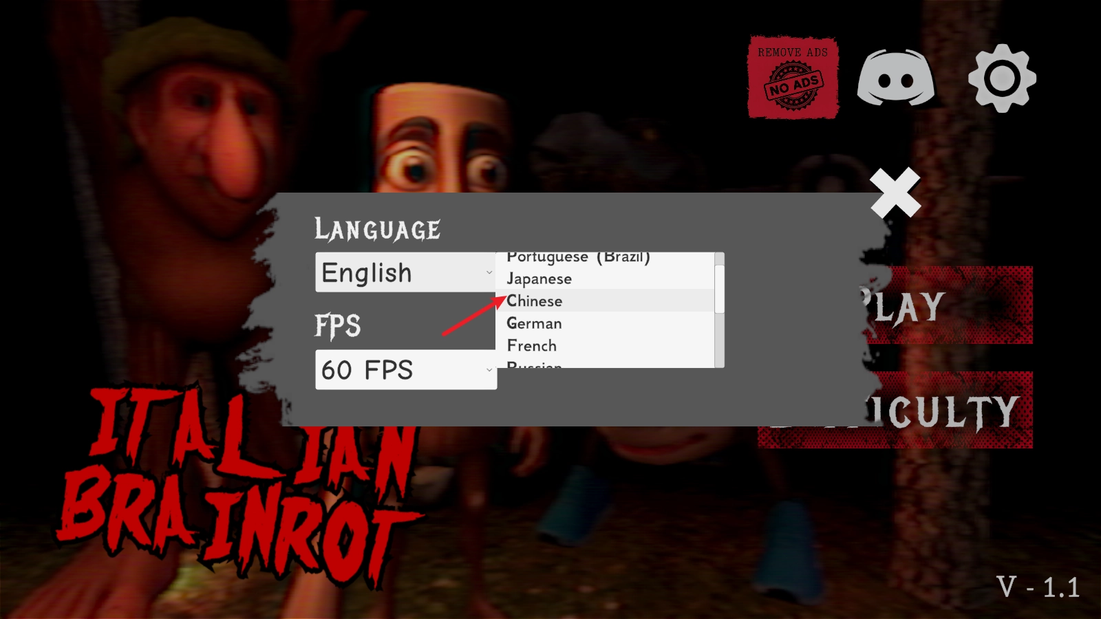 接下来我们点击此处的ENGLISH,下方还能调节游戏的帧率。