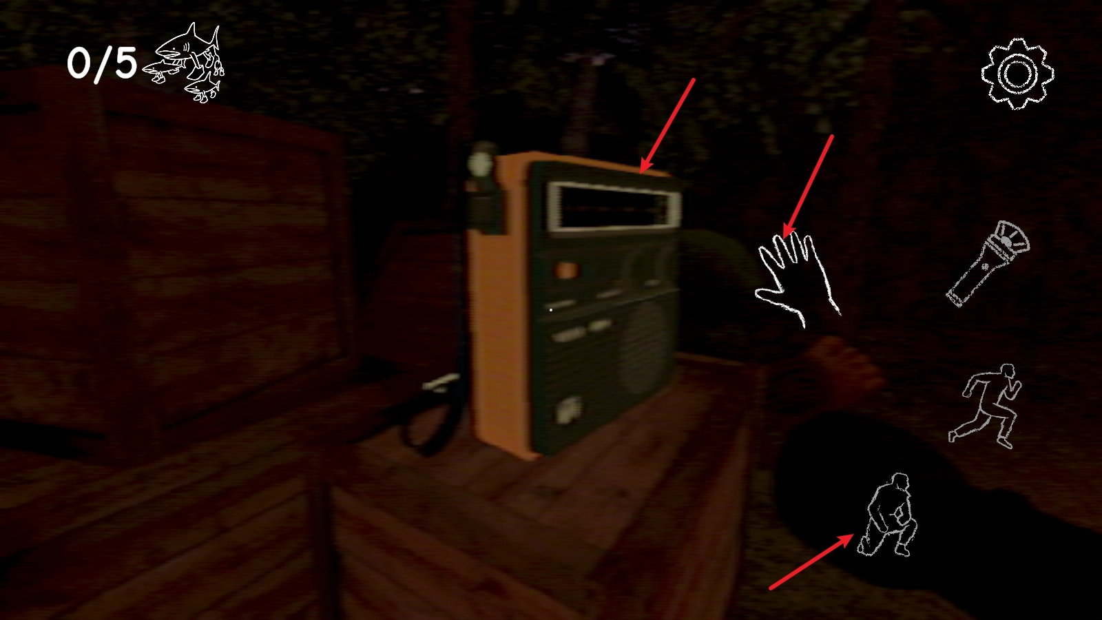 当靠近物品时,屏幕上会出现一个用于交互的小手图标,点击该图标就能与物品进行互动;在某些情况下,还需要先蹲下才能完成交互,此时点击右下角的按钮即可实现蹲下操作。