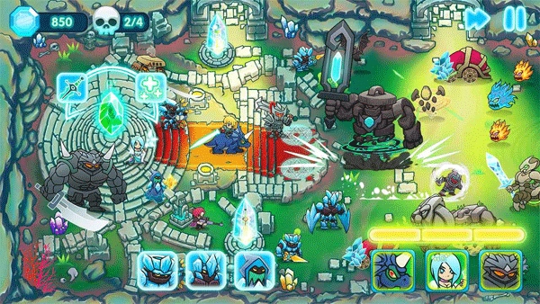 它完美融合了实时策略、塔防与Roguelike元素,你能自由挑选部队、魔法和英雄,打造出最具杀伤力的组合!