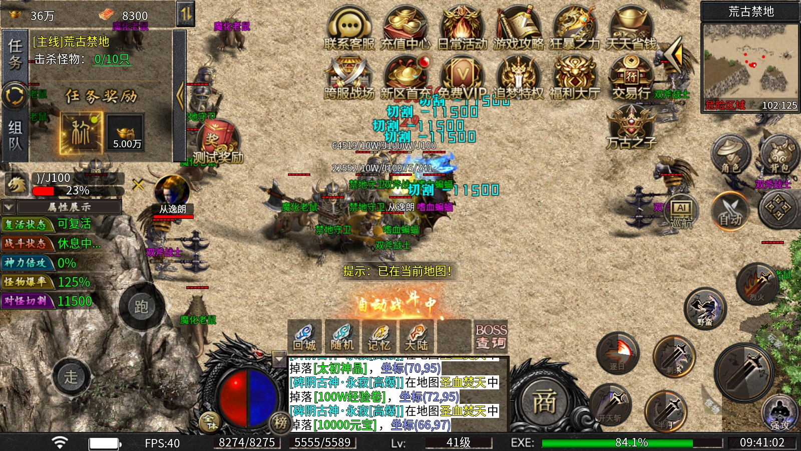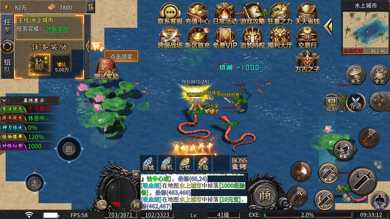 骰定乾坤:每日每击杀188只怪物可免费摇骰子1次(上限50次),摇出豹子即赠大量属性加成,助力各位前期发育领先他人一步。