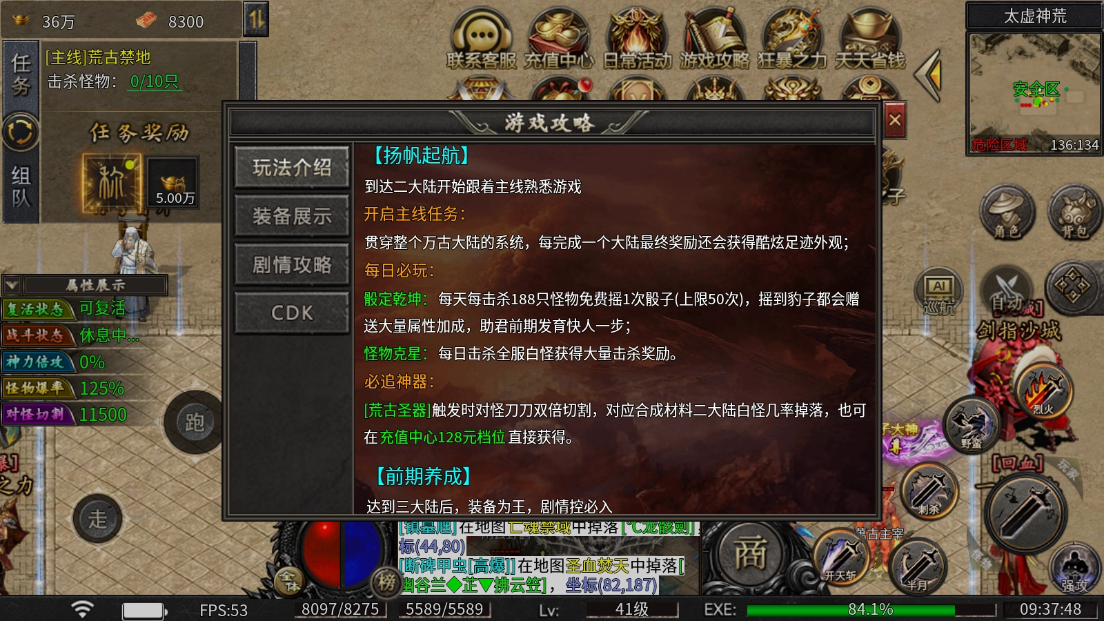 必追神效:[荒古圣器]触发后对怪物实现刀刀双倍切割效果,其合成材料可由二大陆白怪概率掉落获取,也能在充值中心的128档位直接购买得到。