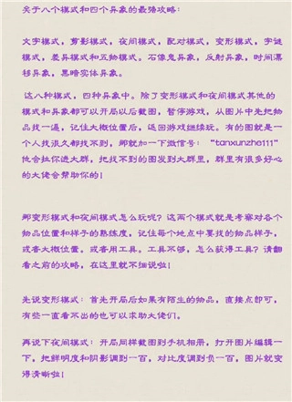 那我们在各个模式和异象中,有哪些快速通关的技巧呢?所有技巧我都放在图三里啦~快来看看吧!