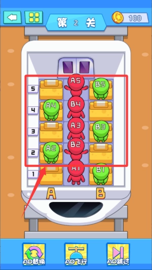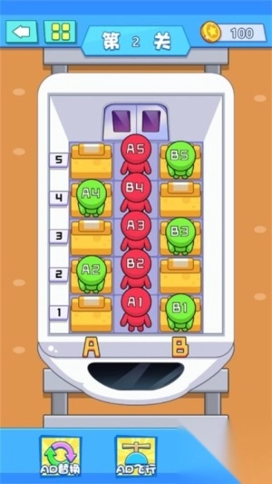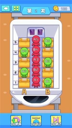 核心目标是对乘客的移动路径进行合理规划,借助有限的空间来完成座位匹配,部分关卡需要触发机关或者移除障碍物,才能解锁新的区域。