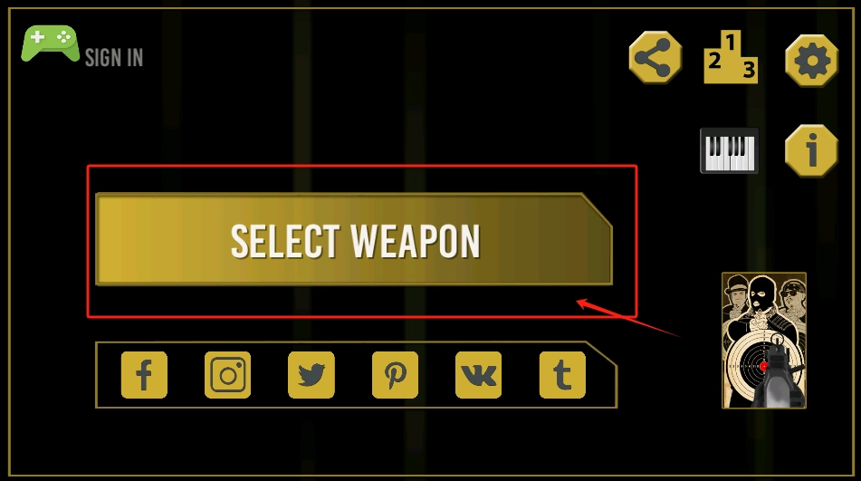 点击红色框内的黄色“SELECT WEAPON”按钮,即可开始选择枪械。