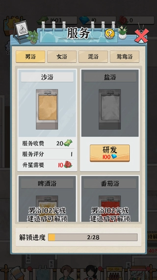 《浴场之王》的玩法内容十分丰富,还能为玩家真实还原洗浴中心的完整经营流程。游戏开始时,玩家接手的是一家破旧不堪的店铺,需要从零起步,从装修风格的设计到服务项目的规划,每一个环节都得亲力亲为。