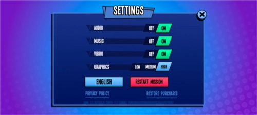 在游戏正式启动前,点击左上角的设置图标,你可以在此处调整游戏的音效、画质、语言等选项,不过当前语言设置里只有英文,暂时没有中文选项。