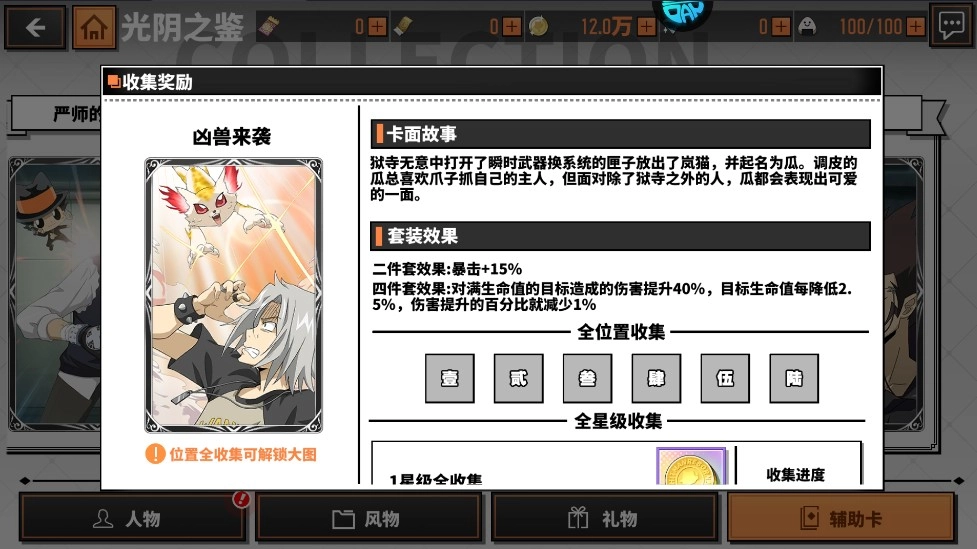二件套效果:暴击率提升15% 四件套效果:触发暴击时,自身额外恢复2点死气值