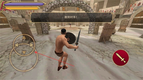 根据提示冲向对手!使用左侧摇杆控制角斗士移动,靠近对方。