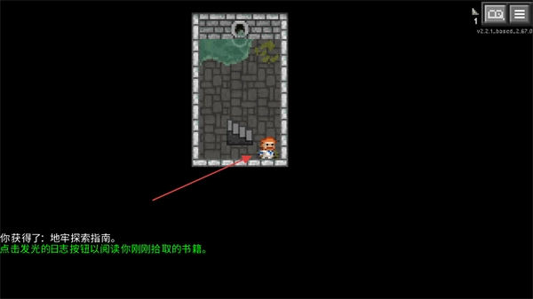 在获取地牢探索指南之后,你可以按照提示去点击那个发光的按钮,这样就能阅读书籍,进而了解地牢的相关规则了。