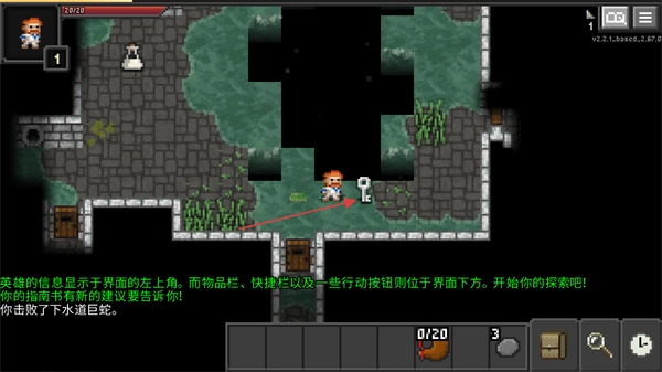操控角色移动,拾取下水湿鞋道具,推进地牢探索。